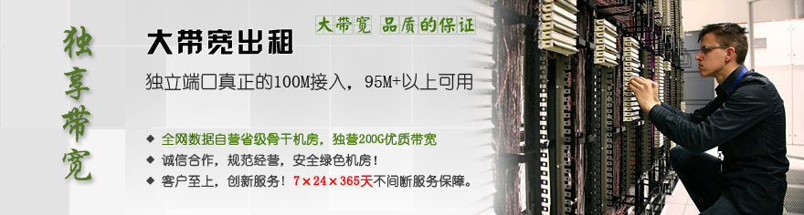 大帶寬獨享區域、所有獨享線路均由機房核心骨干直連接入服務器,根據不同用戶對帶寬的需求,我司可提供5M獨享~100G獨享帶寬